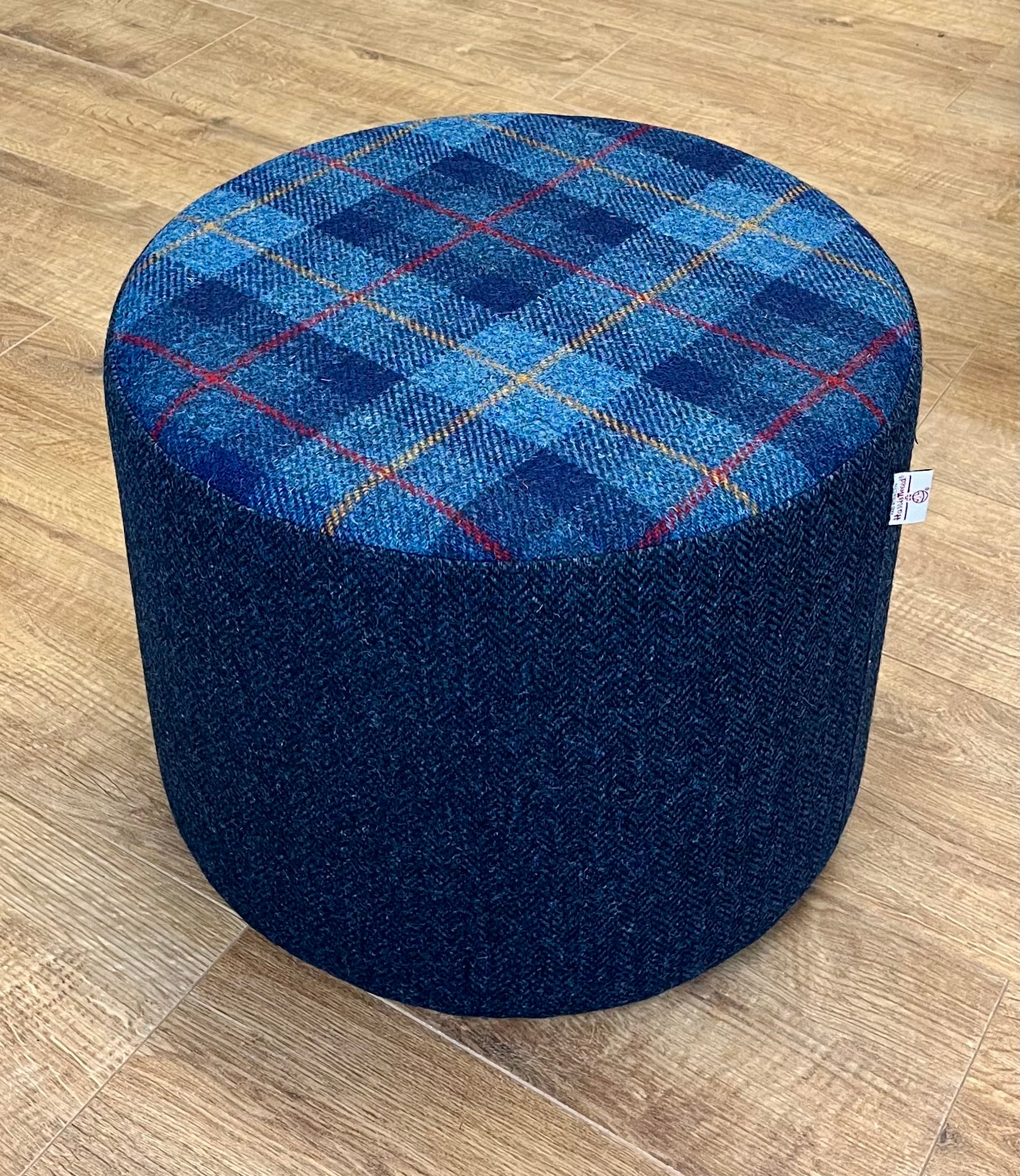 Blue Tartan and Navy Herringbone Harris tweed floating footstool.