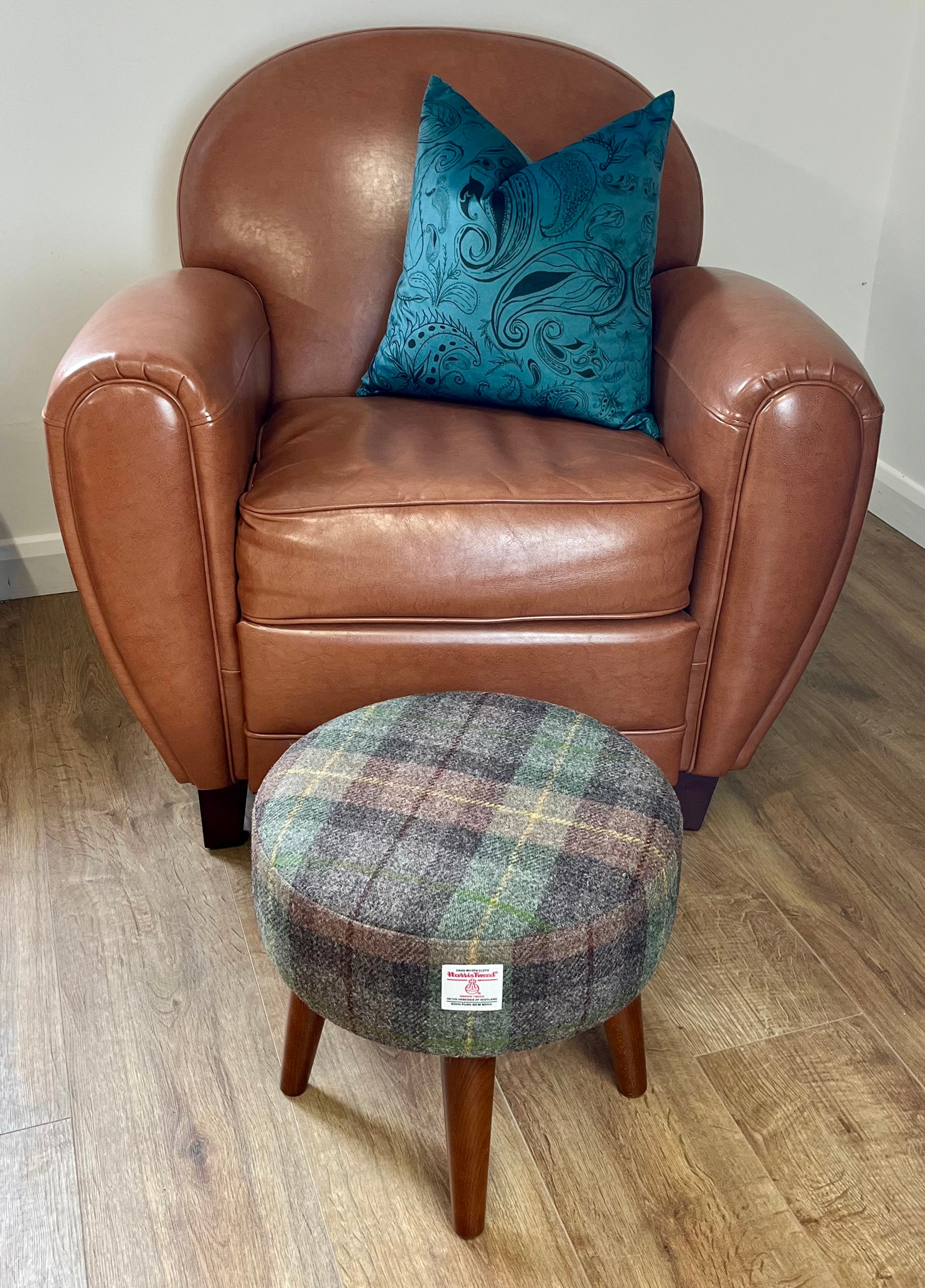 Brown and Green Tartan Harris Tweed Small Footstool