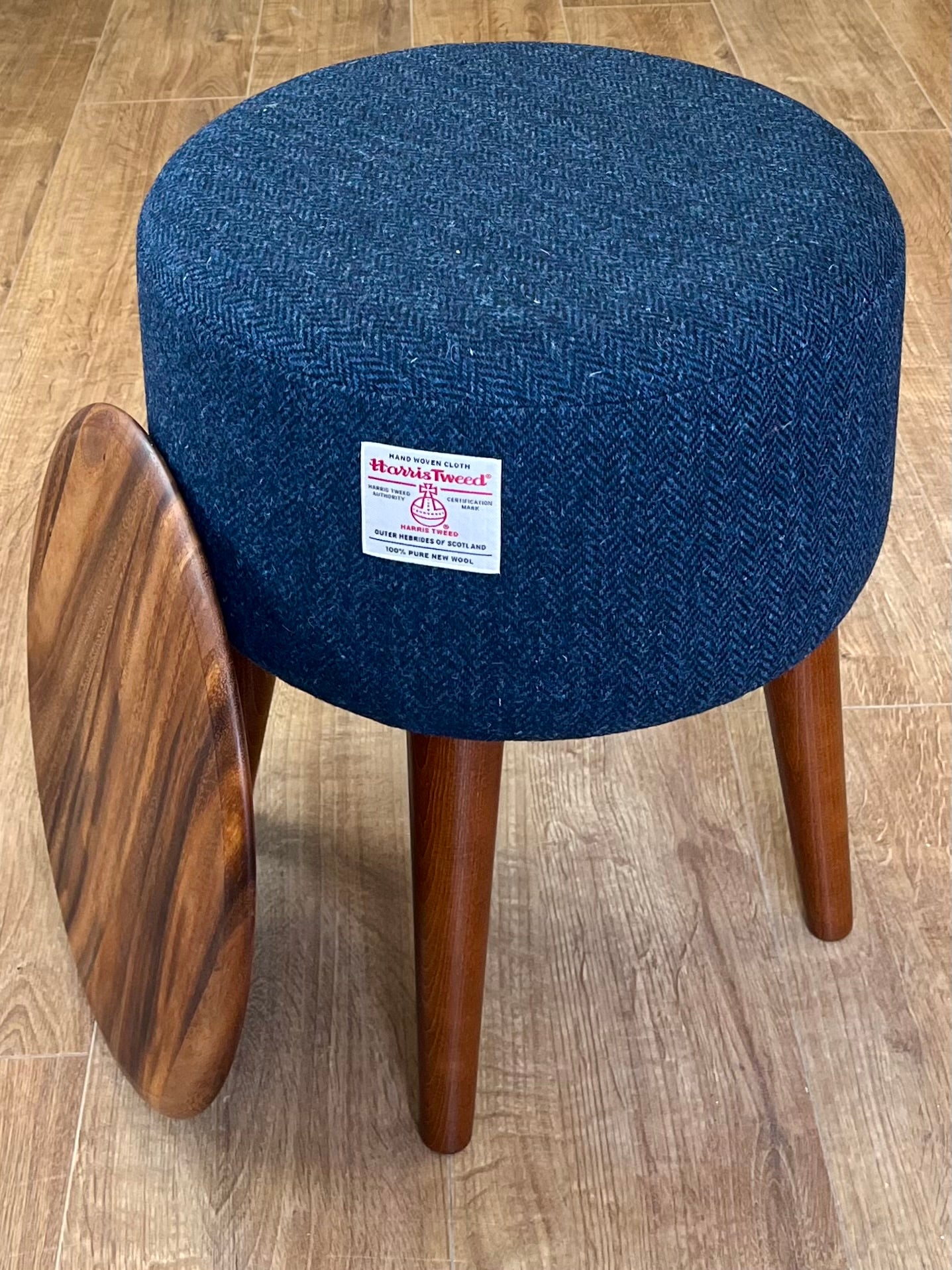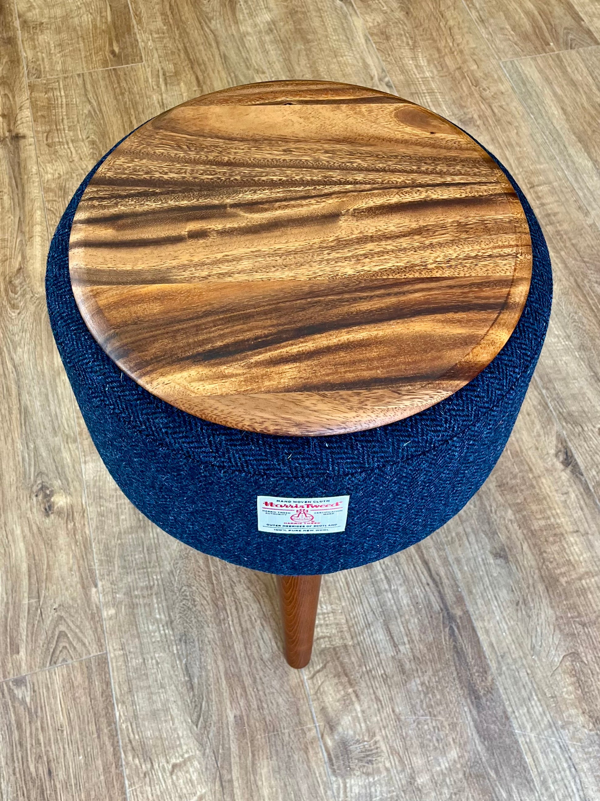 Navy Blue herringbone Harris Tweed side table with removable rustic wooden top.
