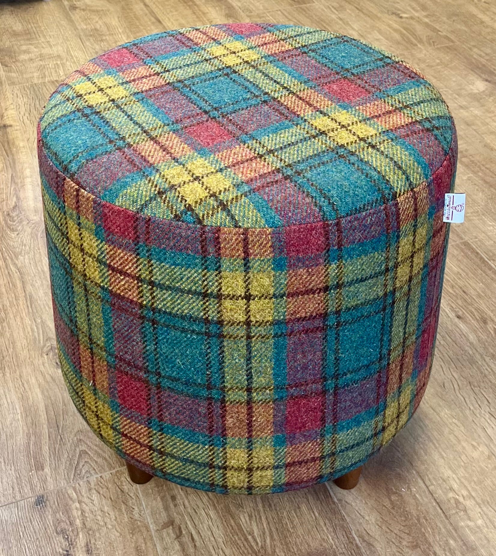 Green, Red & Mustard Tartan Harris tweed Chunky footstool.