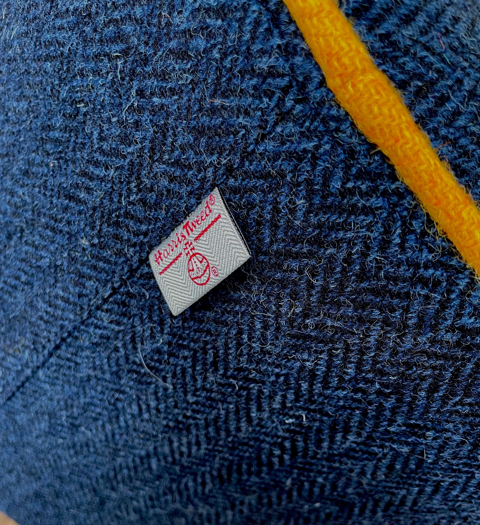 Navy Harris Tweed Chunky Footstool with Yellow Piping Detail