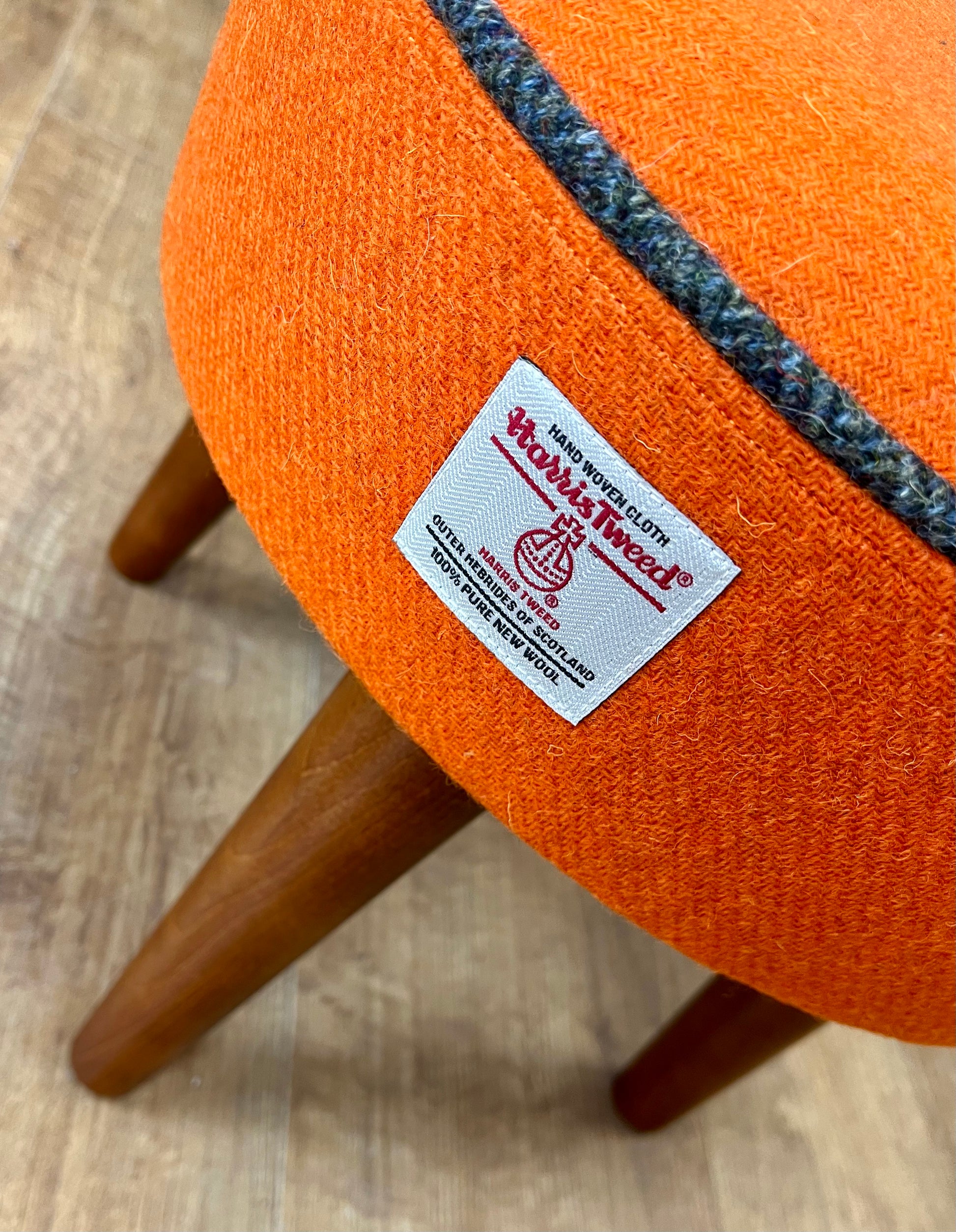 Orange Harris Tweed Footstool with Charcoal Piping and Dark Varnished Wooden Legs